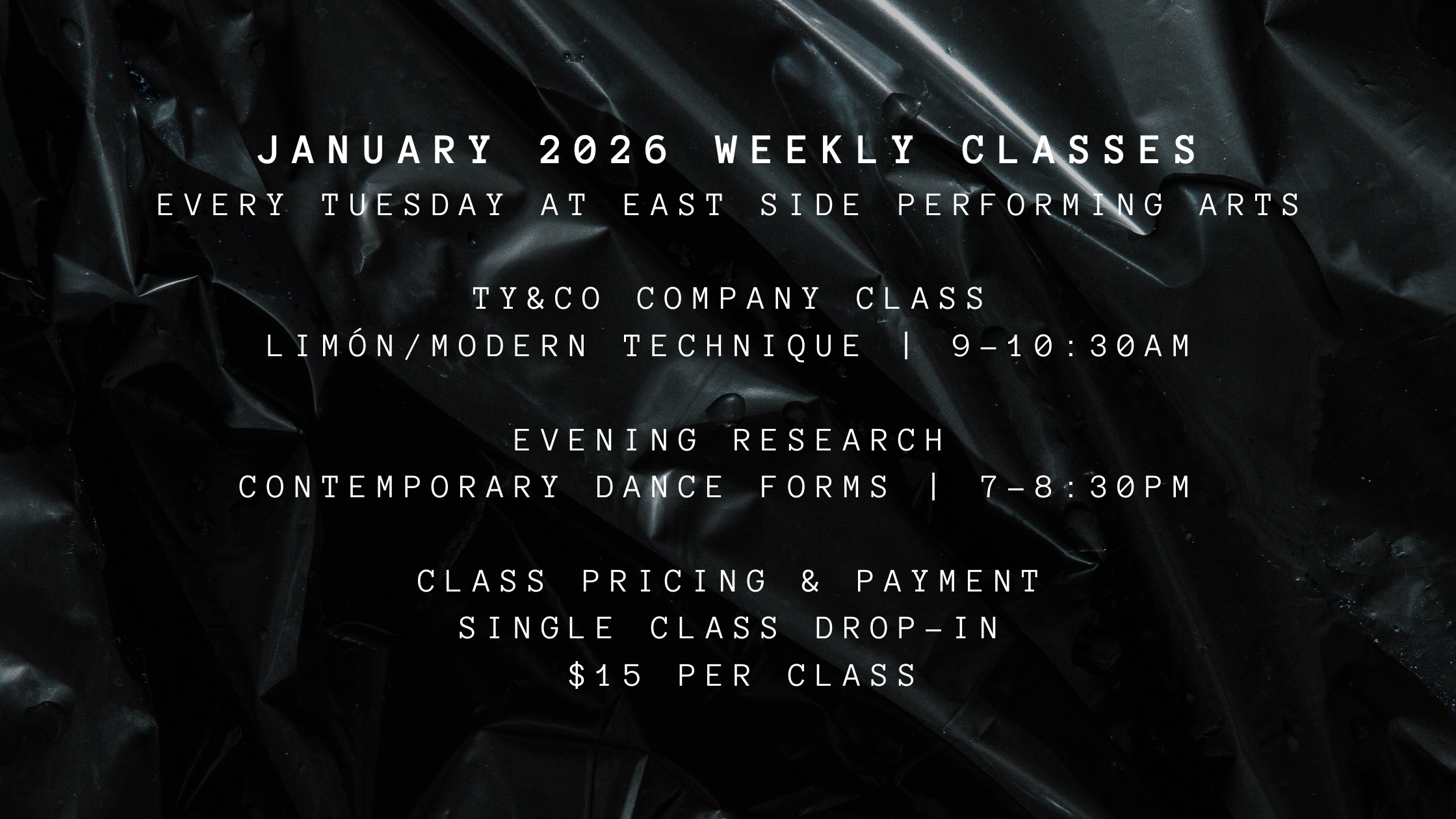 Class explores the body as both storyteller and an evolving instrument, inviting sensation, alignment, and personal expression into the space. As a Community of movers, we’ll unlock the stories living inside us—through progressive floorwork sequencing, improvisation, and phrasework shaped by modern, postmodern, and contemporary influences.